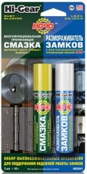 Набор обеспечивает надежную работу механизма замка в условиях низких температур и повышенной влажности. Содержит «Многофункциональную проникающую смазку HG40» и «Размораживатель замков с многофункциональной проникающей смазкой HG40» в компактных аэрозольных баллончиках.