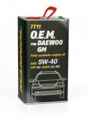 Mannol 7711 O.E.M. 5W-40 - синтетическое всесезонное моторное масло предназначенное для использования в современных бензиновых и дизельных двигателях автомобилей DAEWOO, UZDAEWOO, GM. Высококачественная основа масла обеспечивает отличные низкотемпературные характеристики, гарантируя легкий холодный пуск и надежную защиту от износа. Обладает высокими антиокислительными свойствами и превосходными моюще-диспергирующими характеристиками, что предупреждает образование отложений и поддерживает исключительную чистоту деталей двигателя.