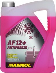 Mannol Antifreeze AF12+ -40°C - готовый раствор, произведенный на основе моноэтиленгликоля с применением высокотехнологичного пакета присадок на карбоксилатной основе. Не содержит силикаты. Обеспечивает надежную защиту всех систем охлаждения. Рекомендован для двигателей, требующих улучшенного теплоотвода - высокофорсированных двигателей, двигателей с турбонаддувом. Успешно предотвращает коррозию черных и цветных металлов, а также высокотемпературную коррозию алюминиевых сплавов. Не содержит фосфатов, нитритов, аминов. Нейтрален по отношению к следующим металлам и сплавам: латунь, медь, легированная сталь, чугун, алюминий. Продленный срок эксплуатации в системах охлаждения: легковых автомобилей - до 250 тыс. км; коммерческого транспорта - до 500 тыс. км; стационарных двигателей - до 6 лет. Гарантированный срок эксплуатации - 5 лет. Отличается удлиненным сроком эксплуатации в сравнении с традиционными антифризами (до 6 лет), благодаря использованию новейших присадок с контролируемым расходом. Обладает улучшенными параметрами теплопередачи, что гарантирует надежную защиту системы охлаждения даже в условиях сверхнагруженной работы двигателя. Mannol AF12+ совместим с большинством других охлаждающих жидкостей на базе этиленгликоля.